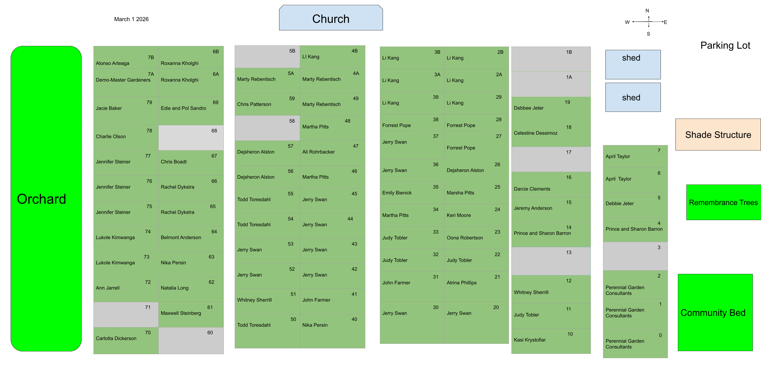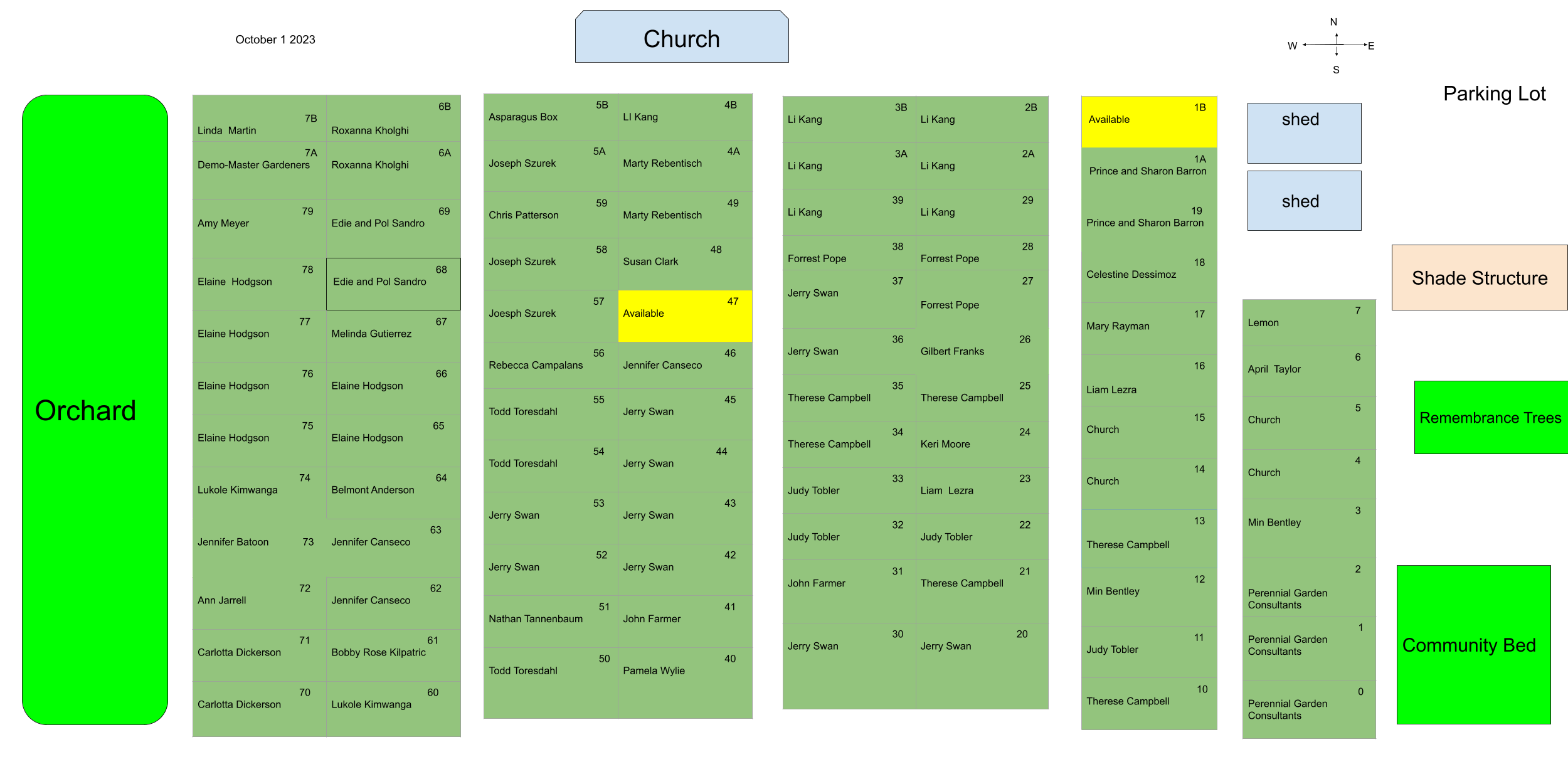 You can view Available Boxes at the button below. Once you have decided on your box and talked to the Garden Secretary, please download the “Garden Application” form (click here) and the “Assumption of Risk Participation” form (click here). Sign and return those forms to the Garden Secretary. The “Garden Rules and Regulations” can be found by clicking here.